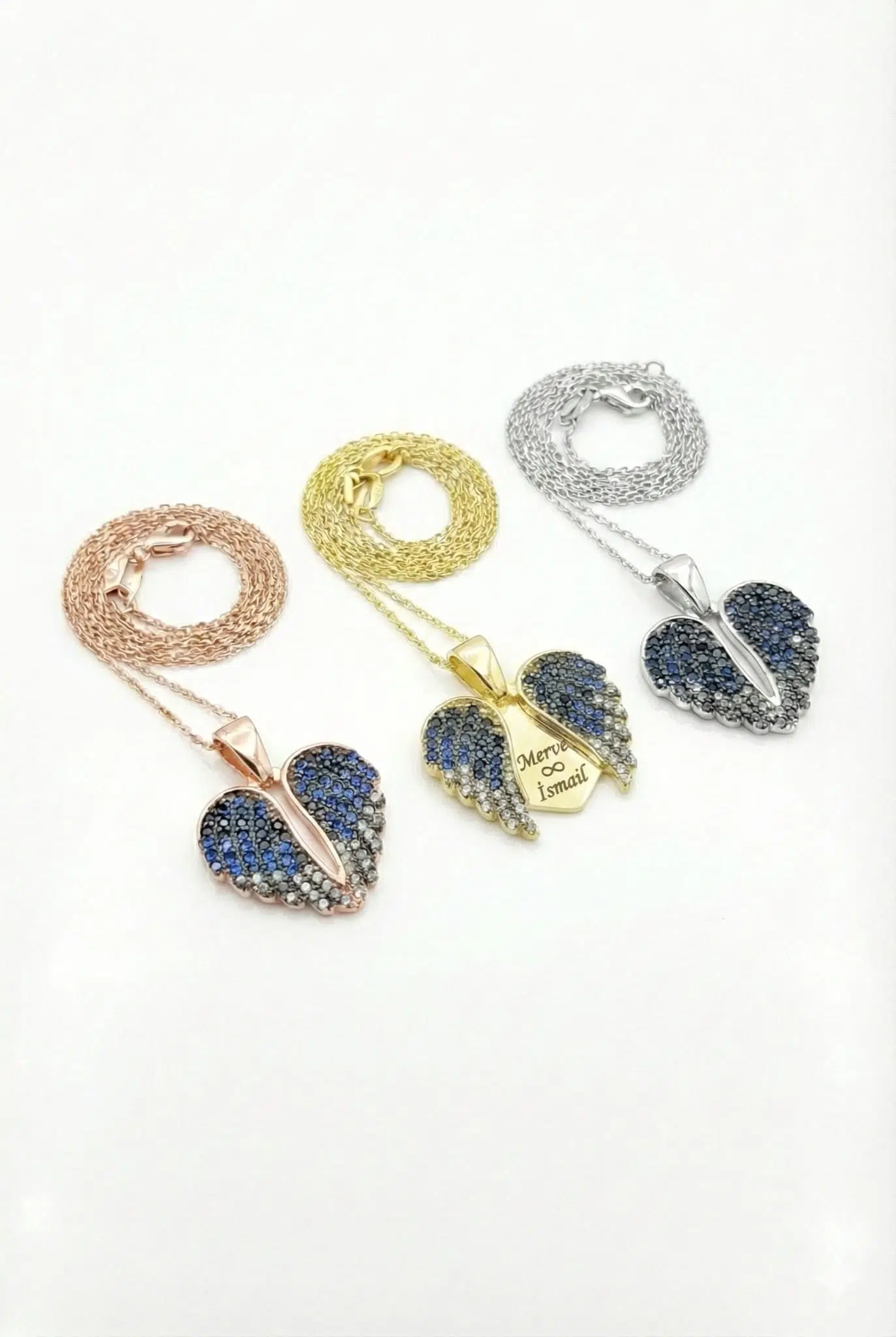 925 Akışlı Açılır İsimli Kalp kolye.rose.gold.rodaj