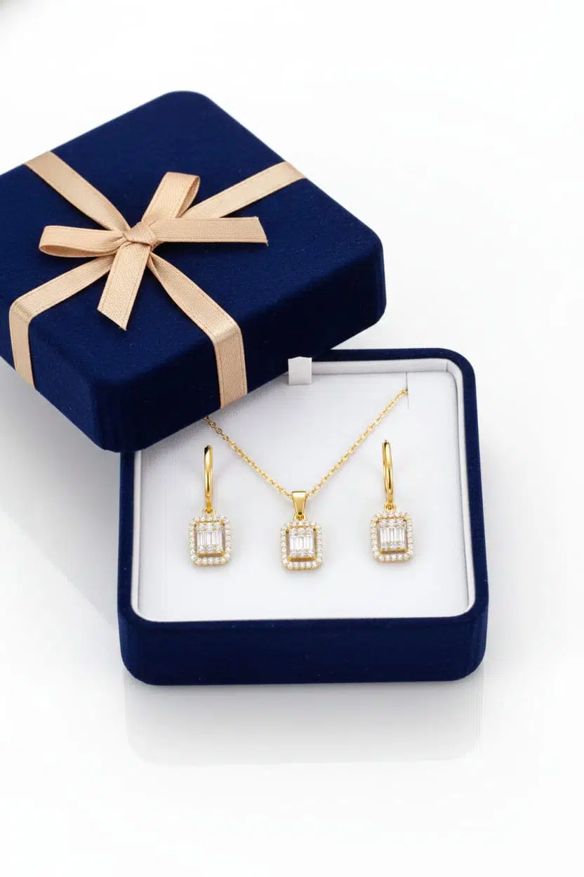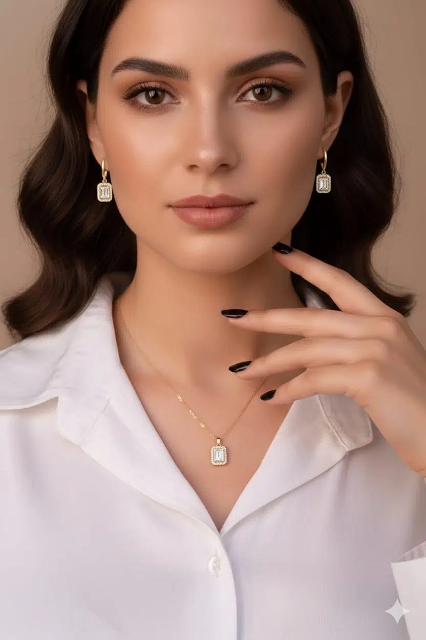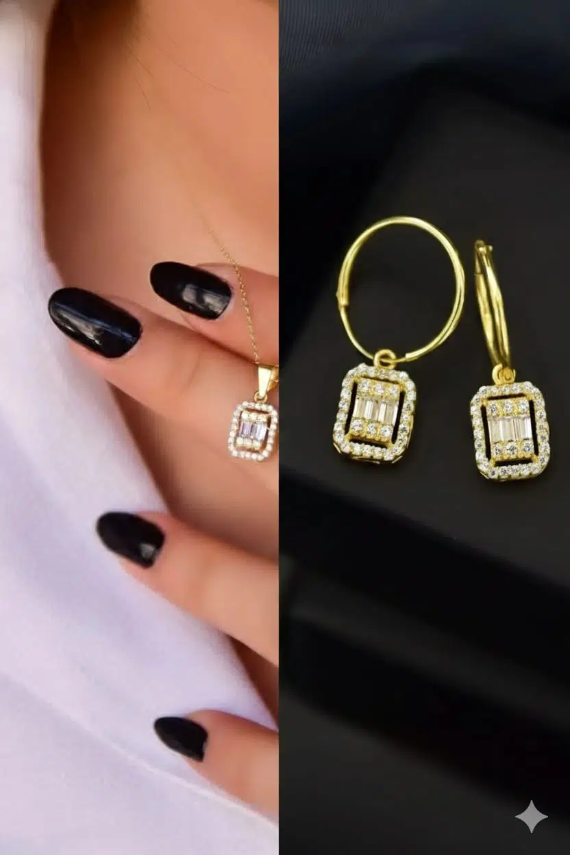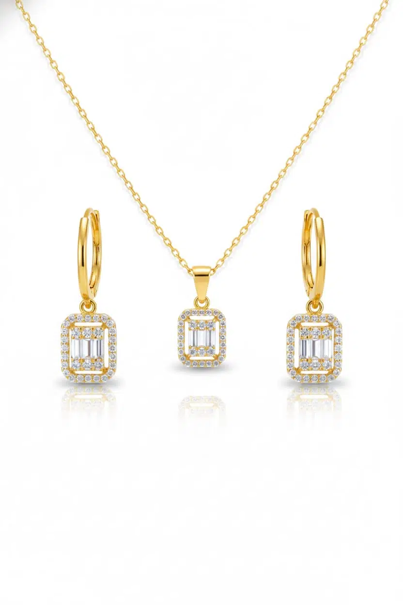 925 Ayar Baget Kolye Küpe Set.rose.gold.rodaj