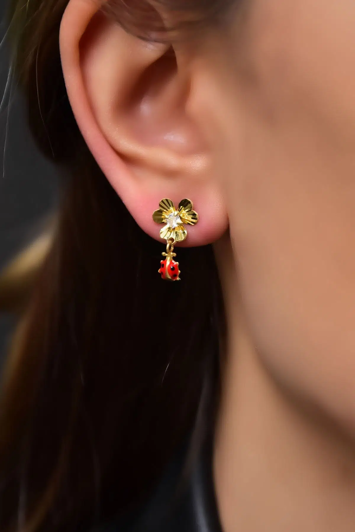 925 Ayar Gümüş. Kaplama: Gold. Ürün Ağırlığı :1,7 Gr. ( +-). En-Boy: 1 x 1 cm. Gümüş ve değerli taşlar nedeniyle belirtilen ortalama ürün ağırlığında ± %5 sapma olabilmektedir. Teslimat: Ürün ahşap hediye kutusunda gönderilecektir. Kullanım: Parfüm, dezenfektan, çamaşır suyu gibi kimyasallardan uzak tutunuz.