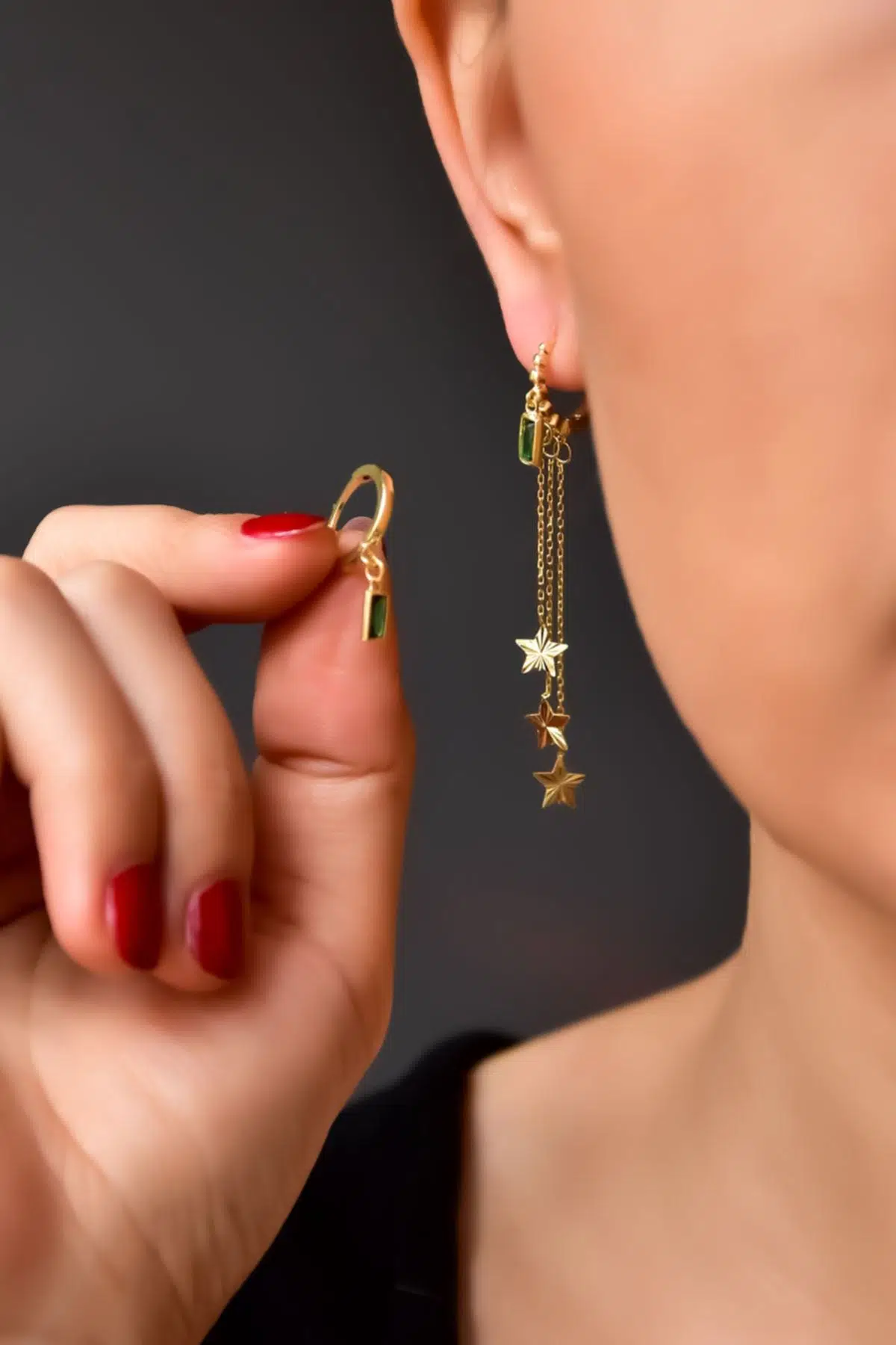 Maden : 925 Ayar Gümüş. Kaplama: Gold. Halka Çap:1,2 cm. Figür En*Boy:1,3*1 cm.Ürün Tek zincirli ve Tek Halka Küpe olarak gönderilmektedir.. Zincir Uzunluk: 4,5 cmÜrün Ağırlığı : 2,32 Gr. ( +-). Gümüş ve değerli taşlar nedeniyle belirtilen ortalama ürün ağırlığında ± %5 sapma olabilmektedir.Teslimat: Ürün ahşap hediye kutusunda gönderilecektir. Kullanım: Parfüm, dezenfektan, çamaşır suyu gibi kimyasallardan uzak tutunuz.