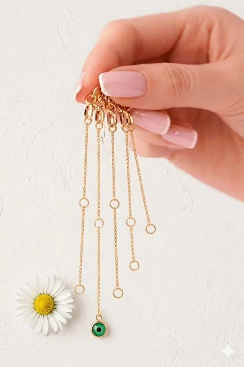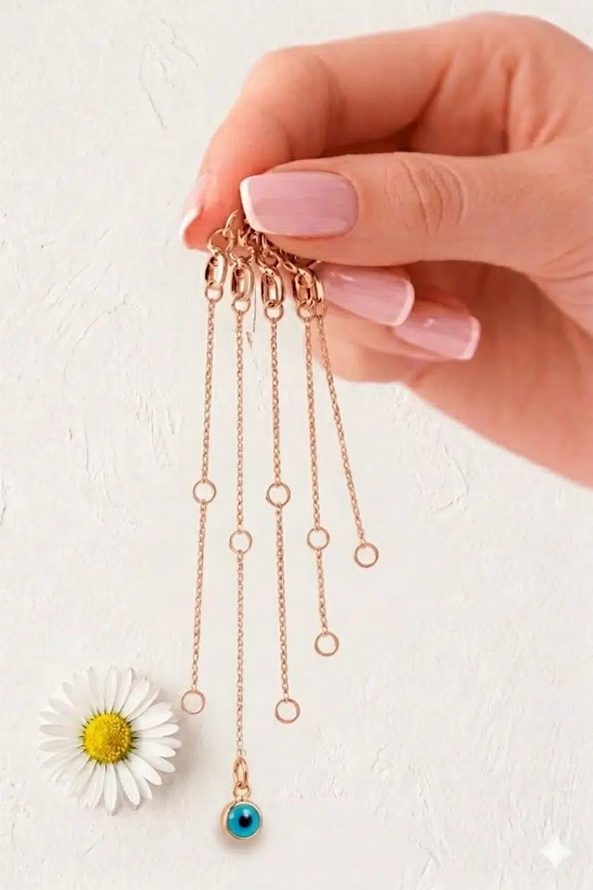 925 Ayar Gümüş Nazar Gözlü Yeşil ve Mavi Seçenekli Uzatma Ek Zincir.rose.gold.rodaj Seçenekleriyle