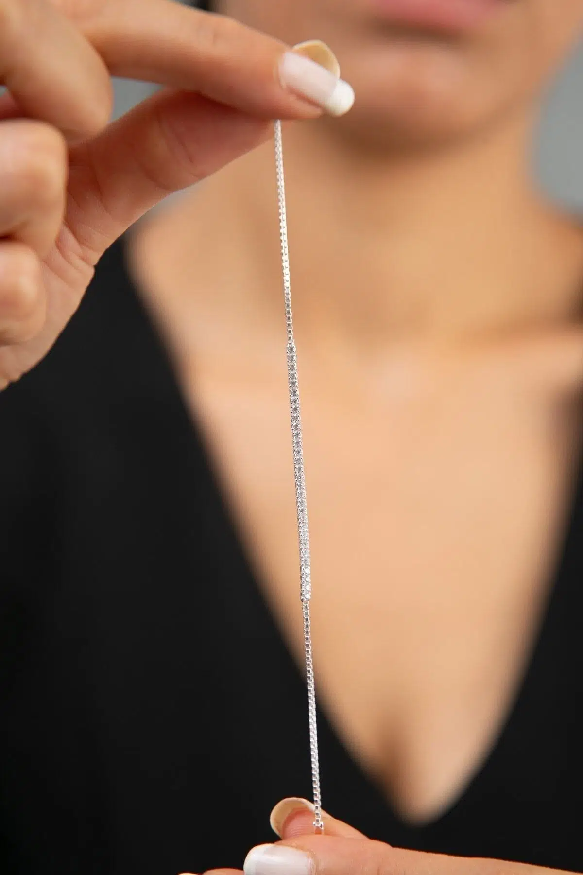 Maden : 925 Ayar Gümüş. Kaplama: Rodyum. Zincir Uzunluğu: 18 cm. Taş: Zirkon. Gümüş ve değerli taşlar nedeniyle belirtilen ortalama ürün ağırlığında ± %5 sapma olabilmektedir. Teslimat: Ürün ahşap hediye kutusunda gönderilecektir. Kullanım: Parfüm, dezenfektan, çamaşır suyu gibi kimyasallardan uzak tutunuz.