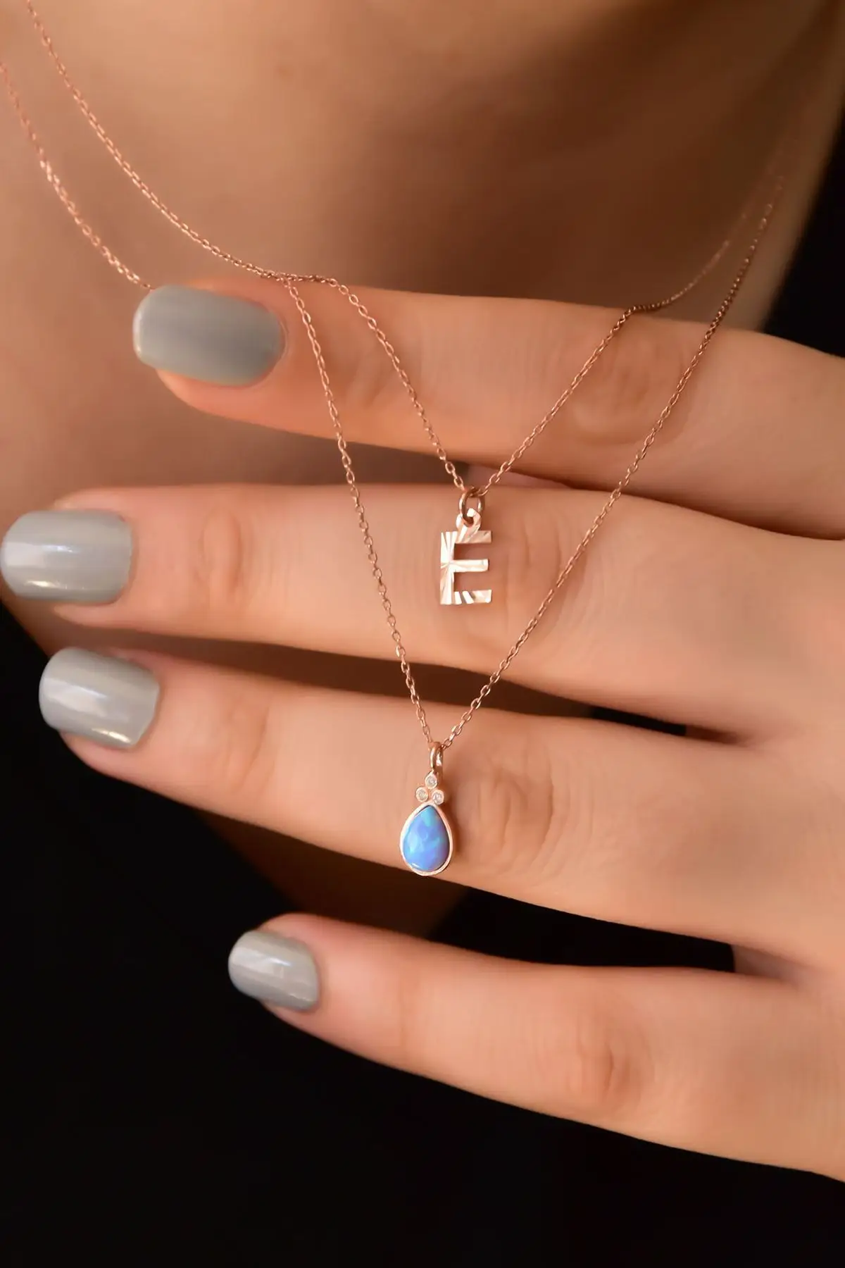 Lütfen Farkı Bir Harf Yazılmasını İstiyorsanız İstenilen Harfi Satın Aldıktan Sonra Satıcıya Soru Sor Kısmından Bildiriniz.Maden : 925 Ayar Gümüş.Kaplama: Rose Altın.Taş: Opal.Ürün Ağırlığı : 2,90 Gr ( +-). Gümüş ve değerli taşlar nedeniyle belirtilen ortalama ürün ağırlığında ± %5 sapma olabilmektedir.Zincir Uzunluğu: 45 cm.Teslimat: Ürün ahşap hediye kutusunda gönderilecektir.Kullanım: Parfüm,dezenfektan,çamaşır suyu gibi kimyasallardan uzak tutunuz.