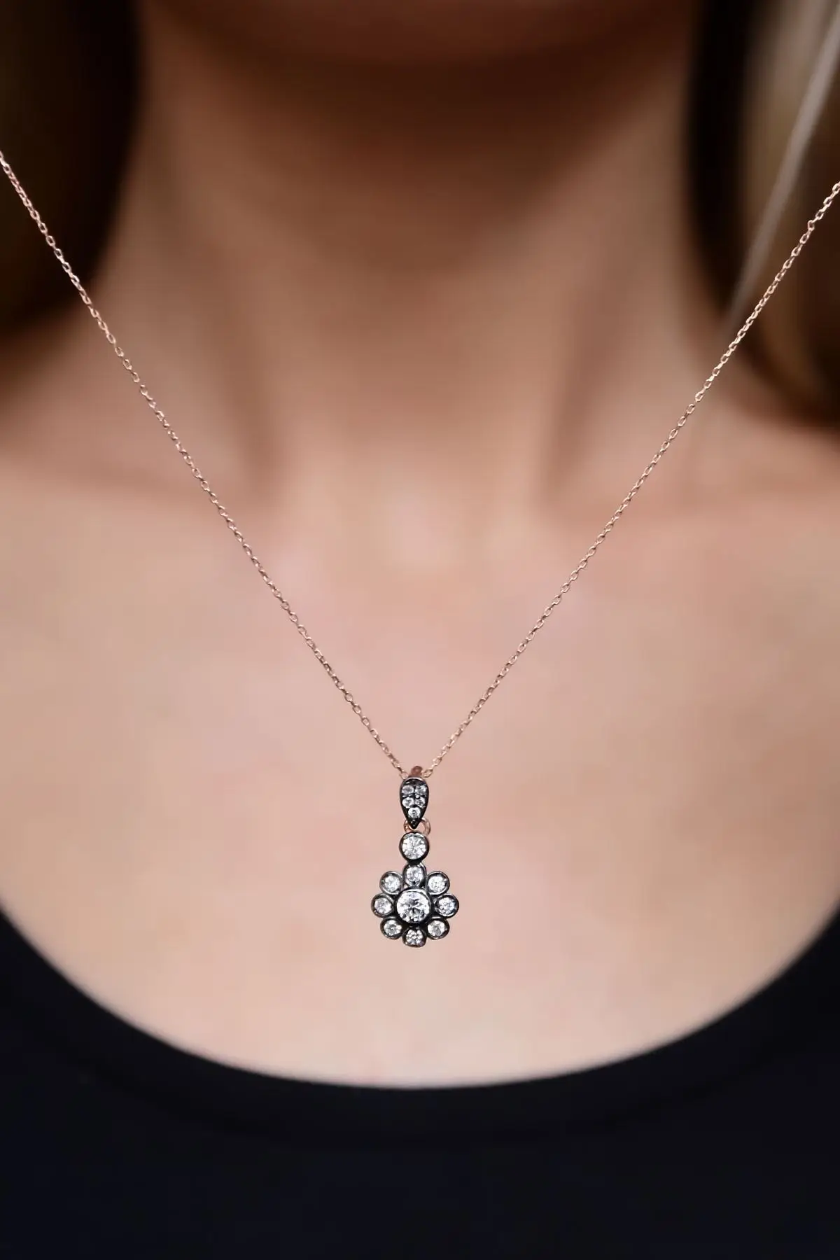 Maden:925 Ayar Gümüş. Kaplama: Rose . Zincir:42 cm. Taş: Zirkon. En*Boy:5mm*2 cm. Ağırlığı :2,01 Gr ( +-). Gümüş ve değerli taşlar nedeniyle belirtilen ortalama ürün ağırlığında ± %5 sapma olabilmektedir. Teslimat: Ürün ahşap hediye kutusunda gönderilecektir. Kullanım: Parfüm, dezenfektan, çamaşır suyu gibi kimyasallardan uzak tutunuz.
