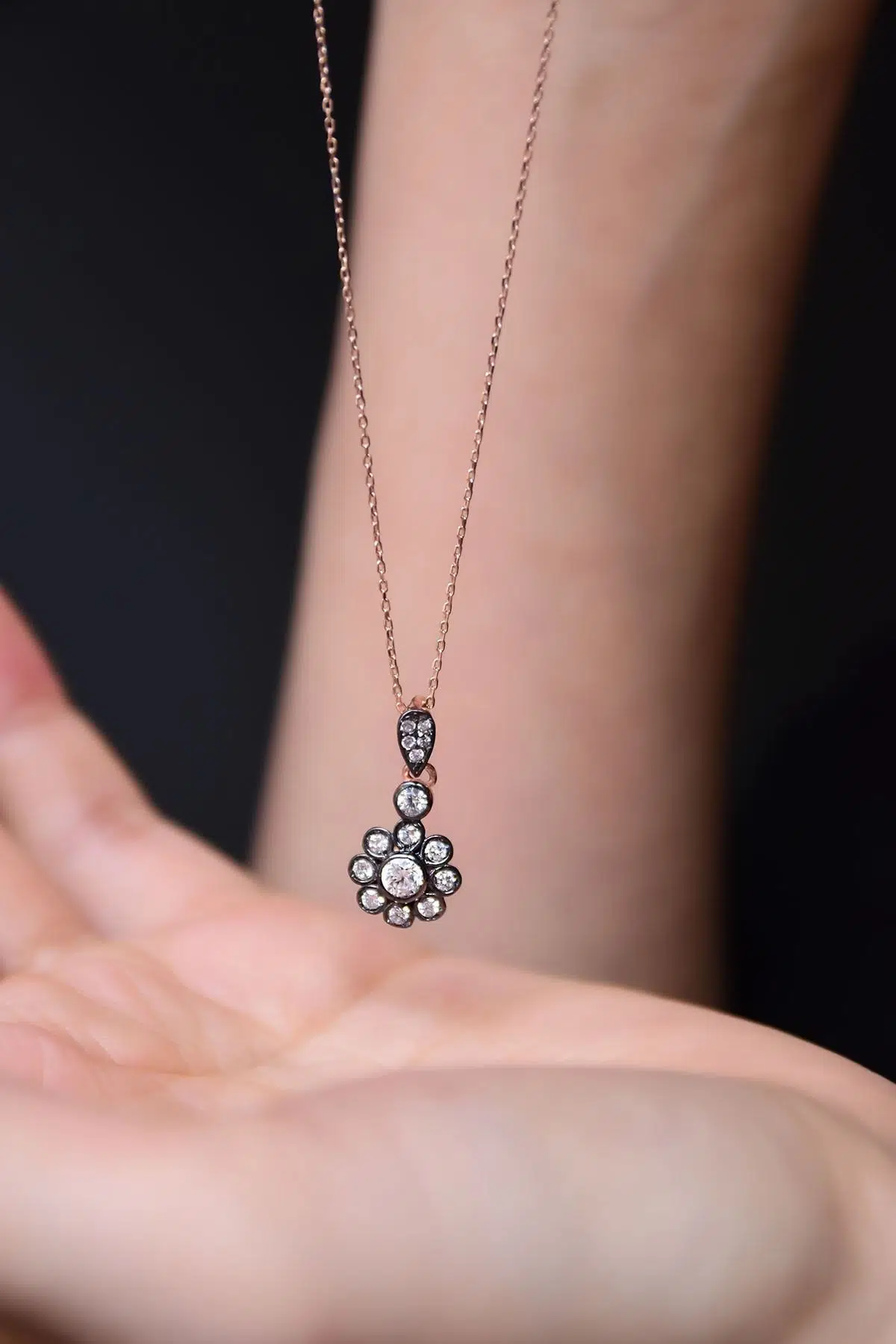 Maden:925 Ayar Gümüş. Kaplama: Rose . Zincir:42 cm. Taş: Zirkon. En*Boy:5mm*2 cm. Ağırlığı :2,01 Gr ( +-). Gümüş ve değerli taşlar nedeniyle belirtilen ortalama ürün ağırlığında ± %5 sapma olabilmektedir. Teslimat: Ürün ahşap hediye kutusunda gönderilecektir. Kullanım: Parfüm, dezenfektan, çamaşır suyu gibi kimyasallardan uzak tutunuz.