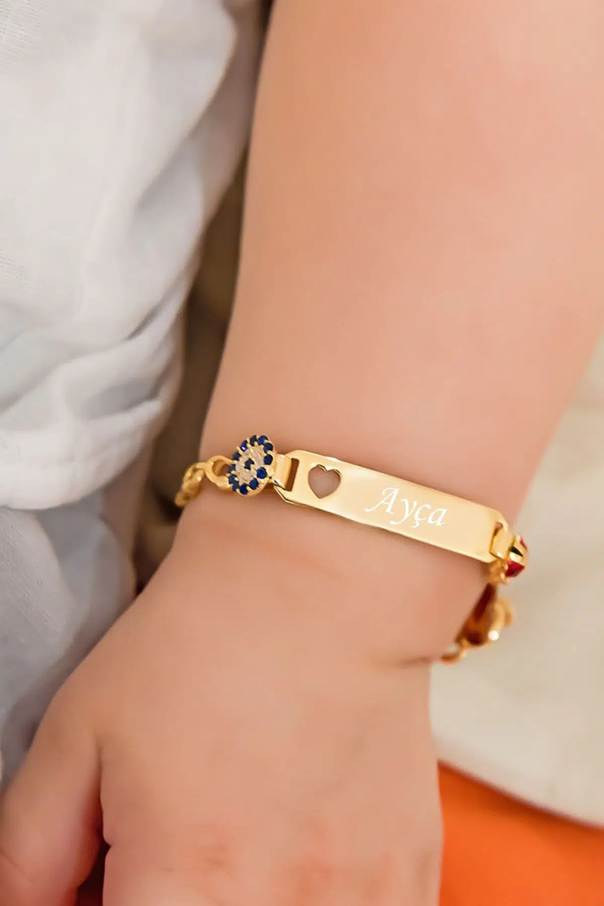 Maden : 925 Ayar Gümüş . Kaplama :Gold. Ağırlık:4,50 gr. Zincir Boyu: 1-5 YAŞ. Lütfen İstenilen İsmi Satın Aldıktan Sonra Satıcıya Soru Sor Kısmından Bildiriniz. Teslimat: Ürün ahşap hediye kutusunda gönderilecektir. Gümüş ve değerli taşlar nedeniyle belirtilen ortalama ürün ağırlığında ± %5 sapma olabilmektedir. Kullanım: Parfüm, dezenfektan, çamaşır suyu gibi kimyasallardan uzak tutunuz.