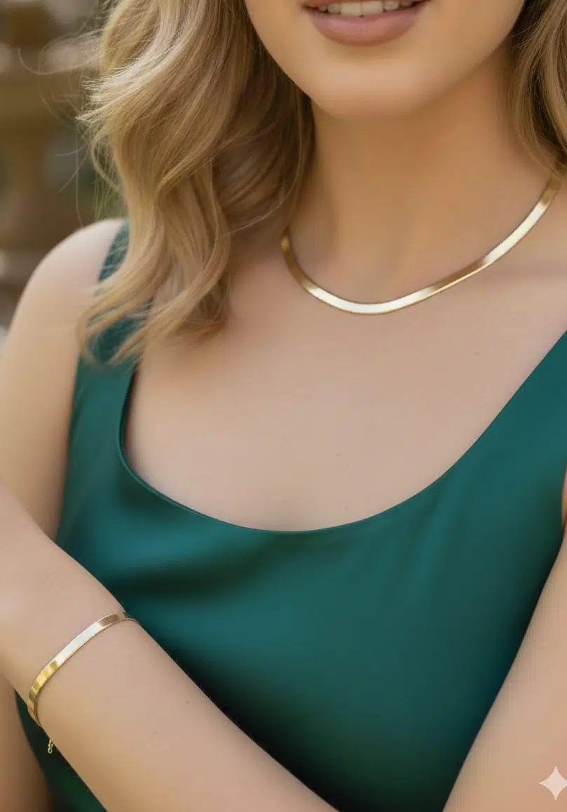 925 Ayar İtalyan Yassı Zincir Yılan Zincir Kolye Bileklik Set