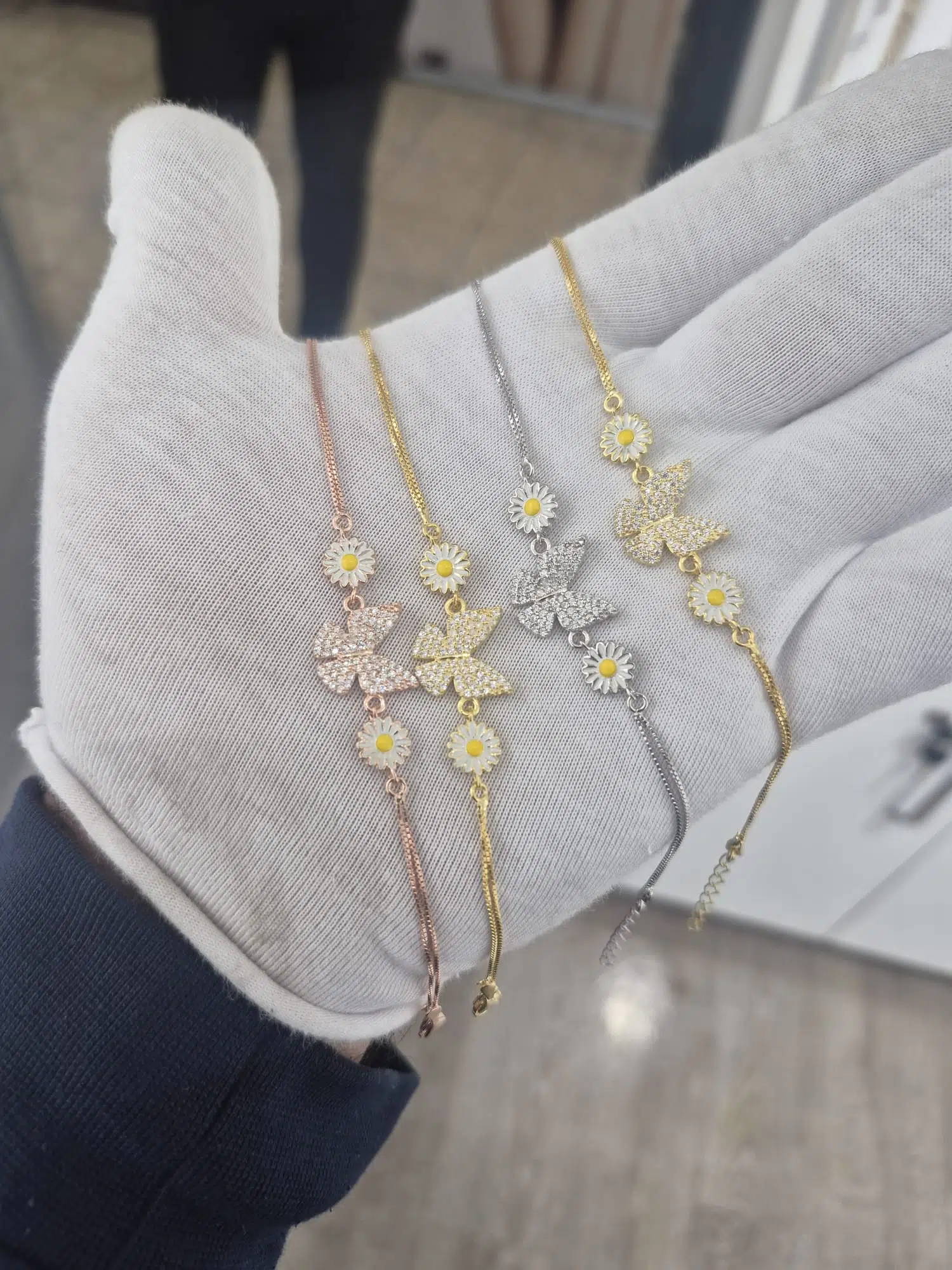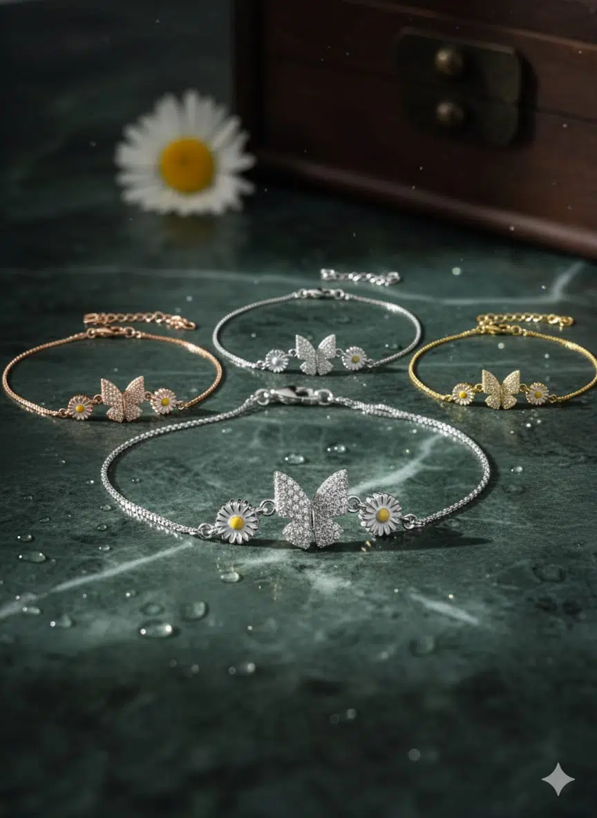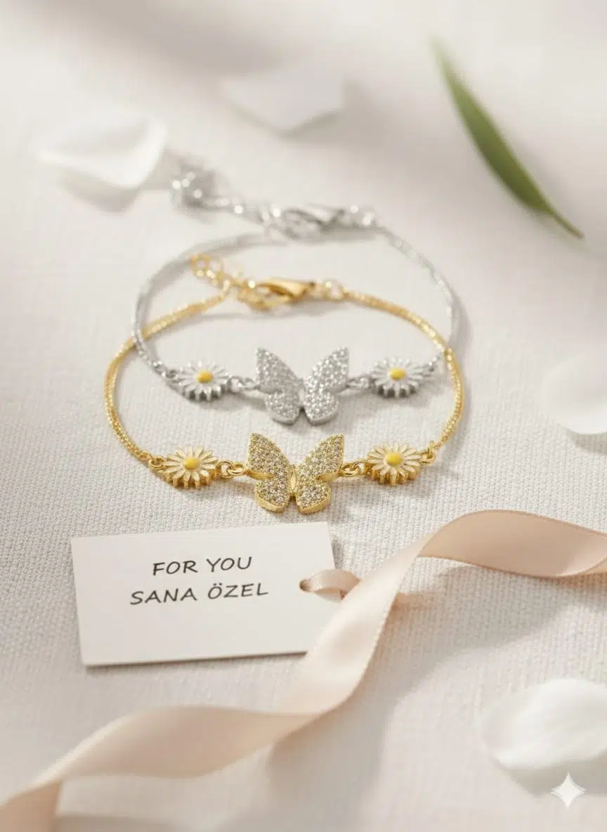 925 Ayar Papatya Silver Papatya Kelebek Bileklik.rose.gold.rodaj