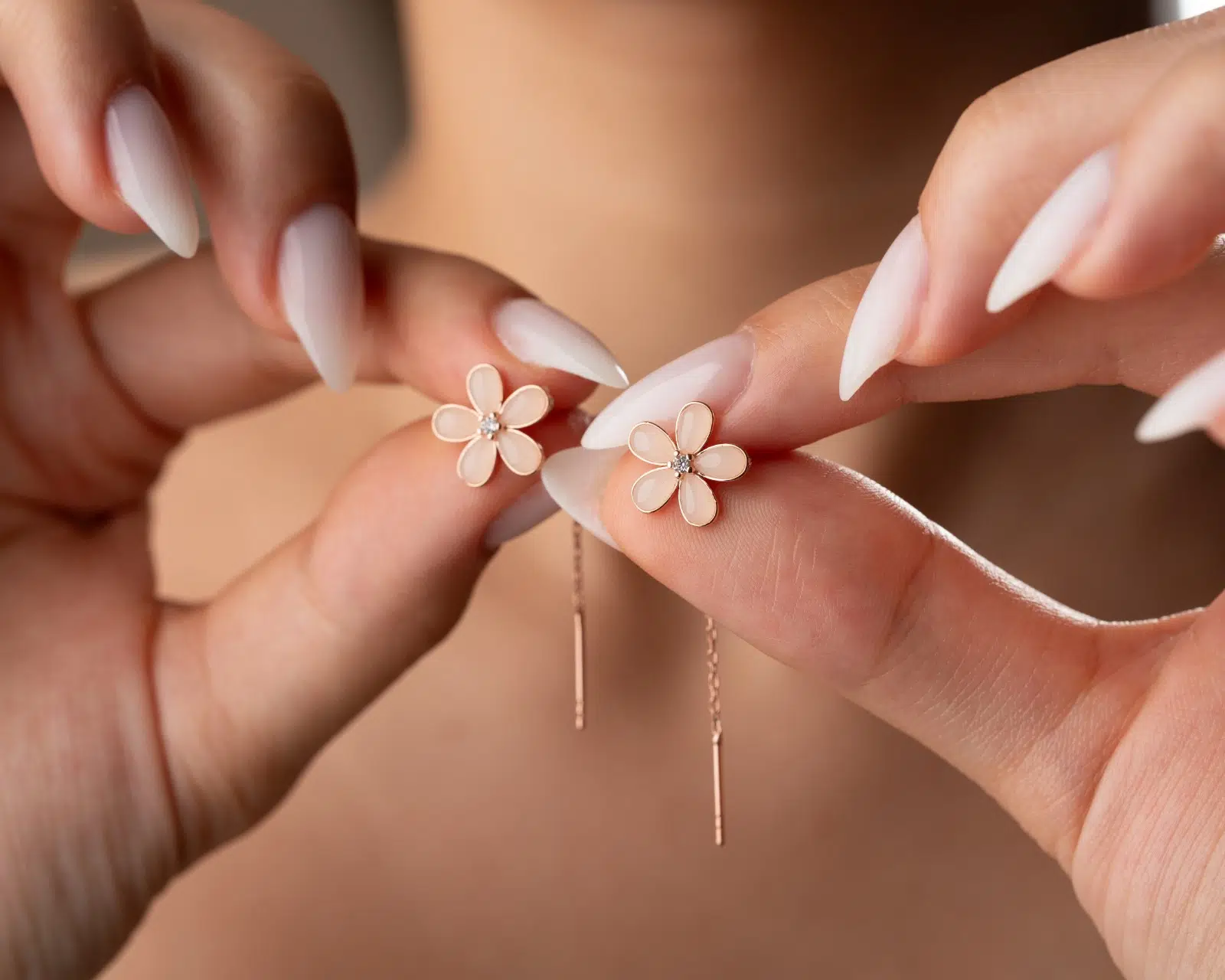 925 Ayar sallantılı papatya küpe.rose.gold.rodaj