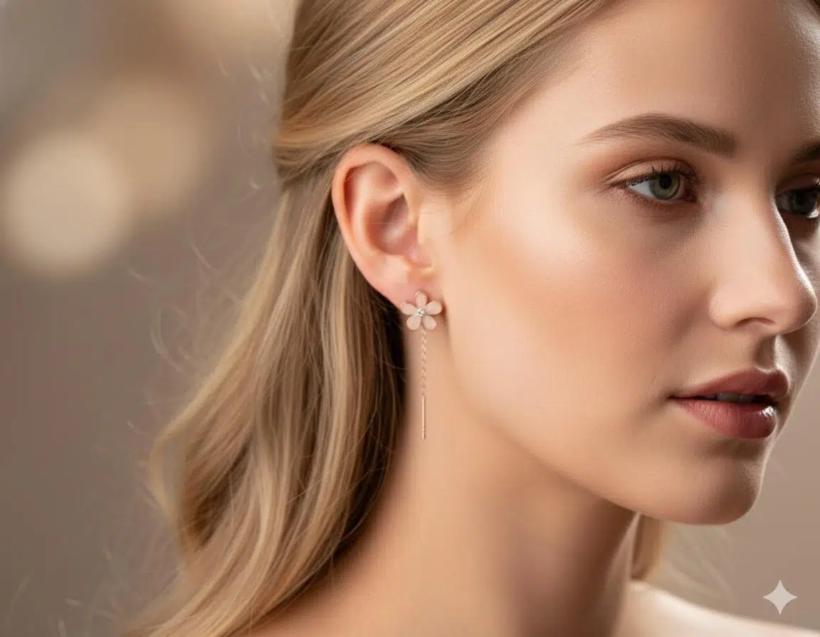 925 Ayar sallantılı papatya küpe.rose.gold.rodaj