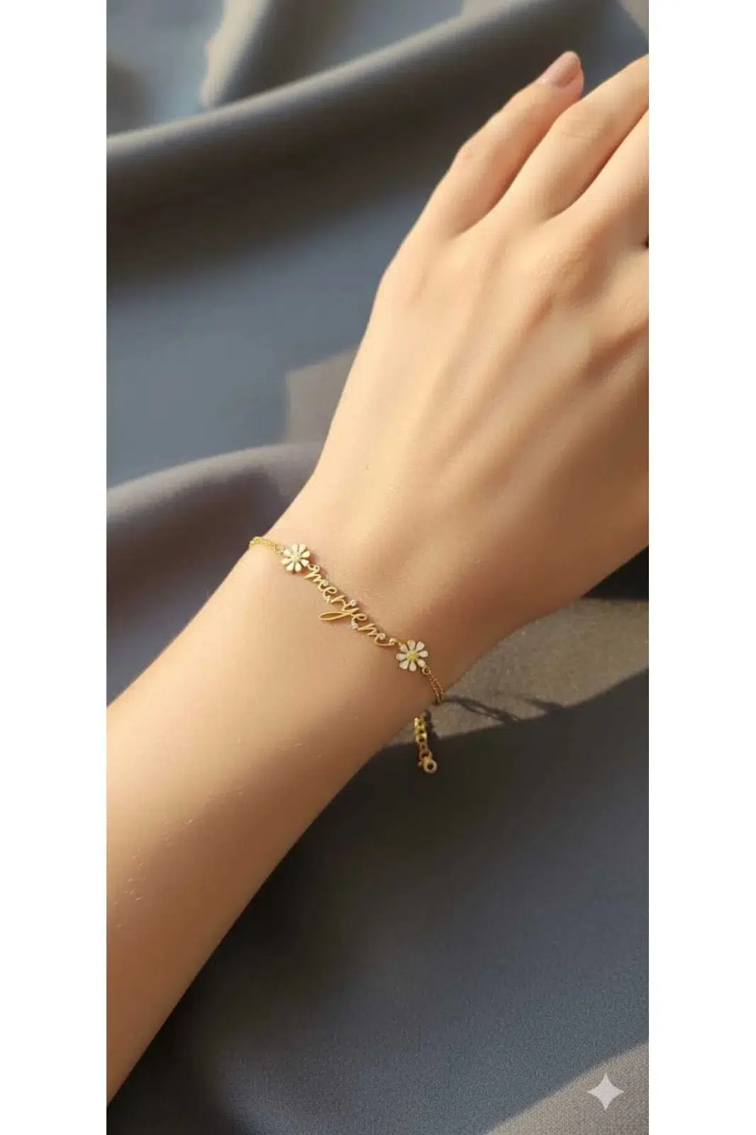 925 Ayar Taşlı Papatya İmza Bileklik.rose.gold.rodaj