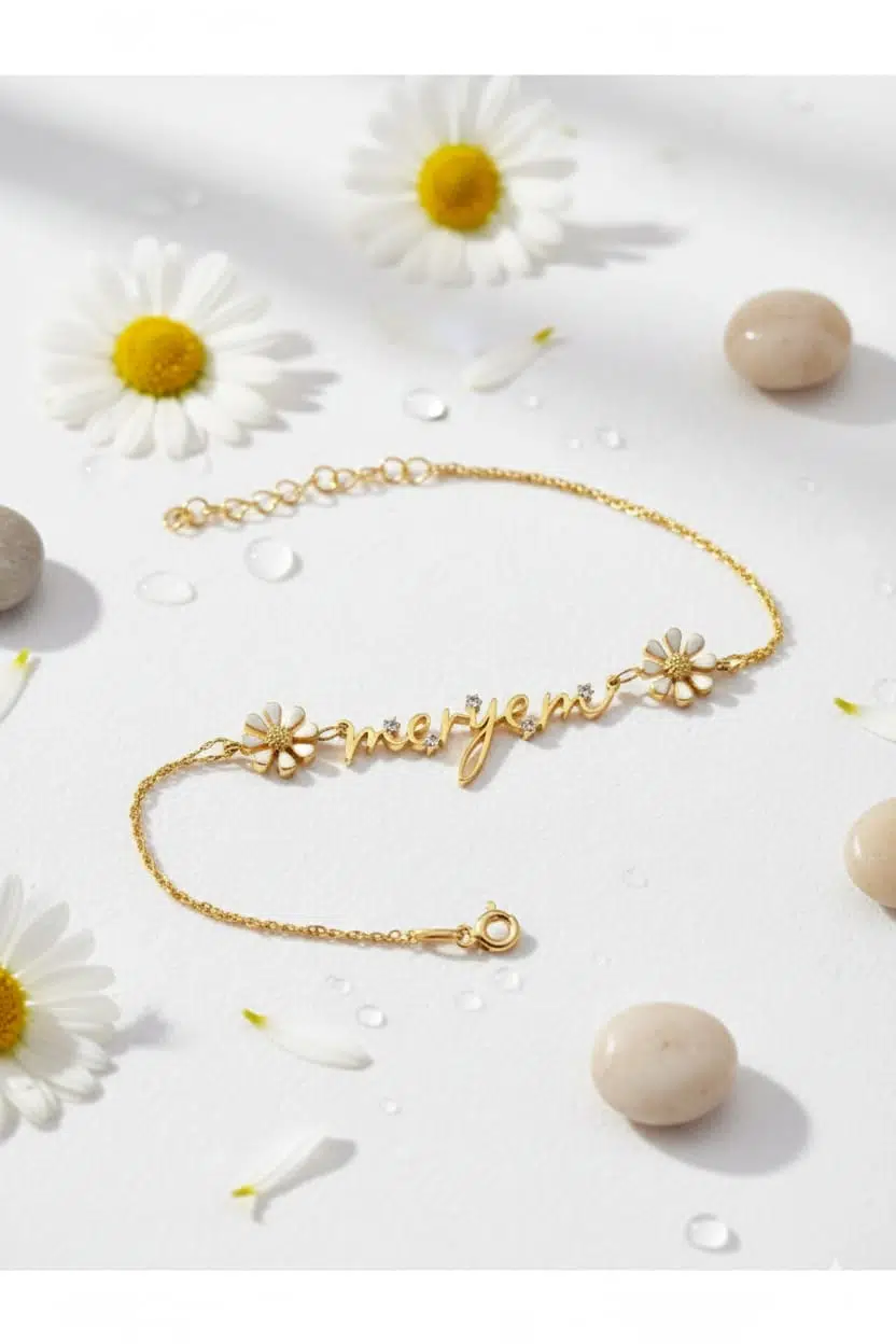 925 Ayar Taşlı Papatya İmza Bileklik.rose.gold.rodaj