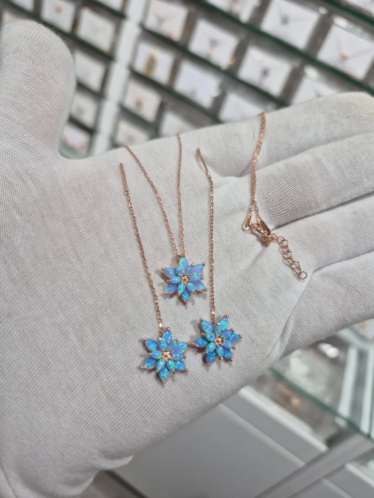 925 AYAR turkuaz opal küpe kolye set opal takım manolya set.rose.gold.rodaj